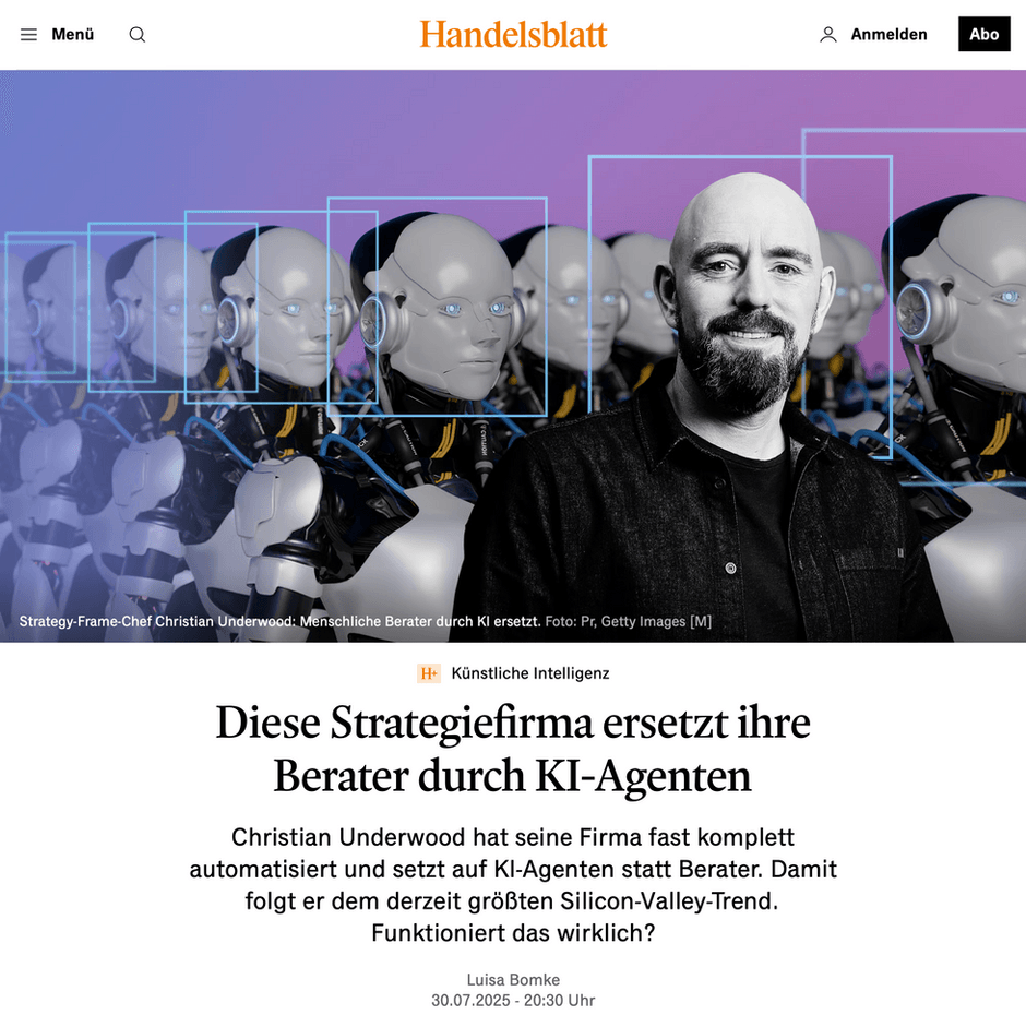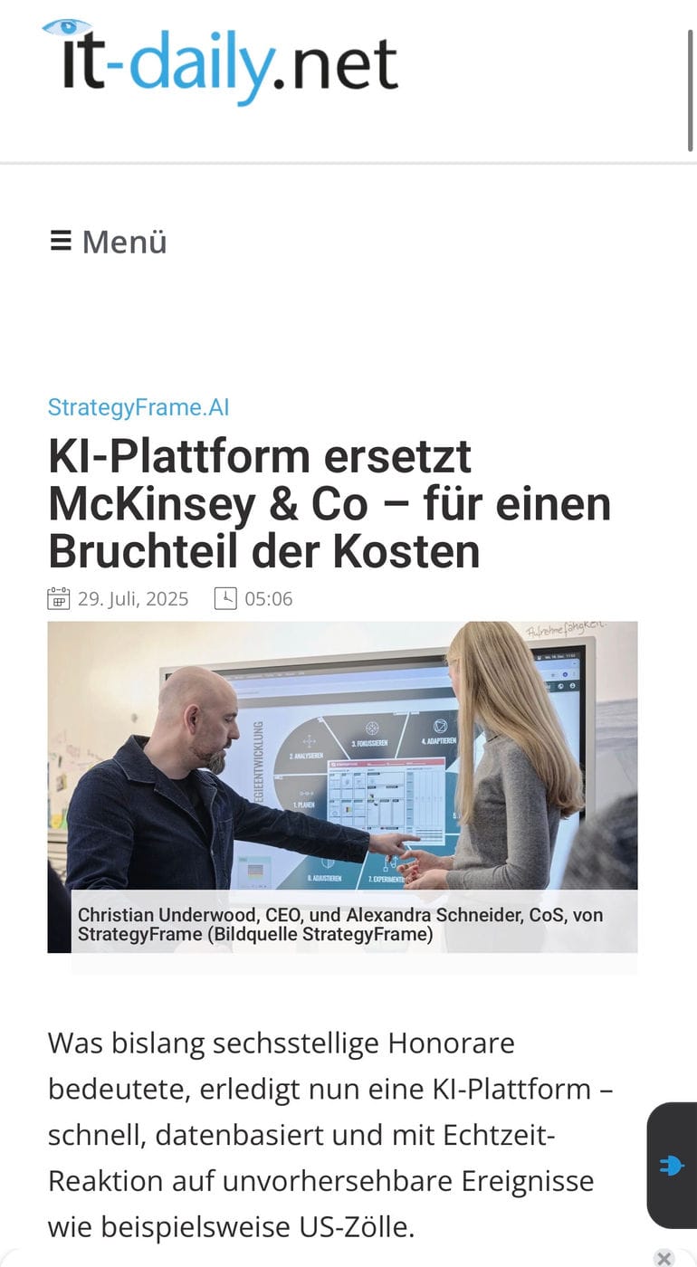 "Christian Underwood macht mit StrategyFrame die Strategieberatung für den Mittelstand bezahlbar"