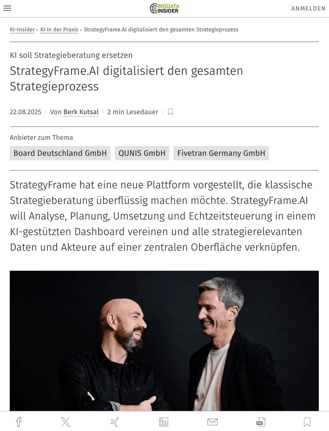StrategyFrame® und unsere Arbeit in ausgewählten Wirtschafts- und Fachmedien.